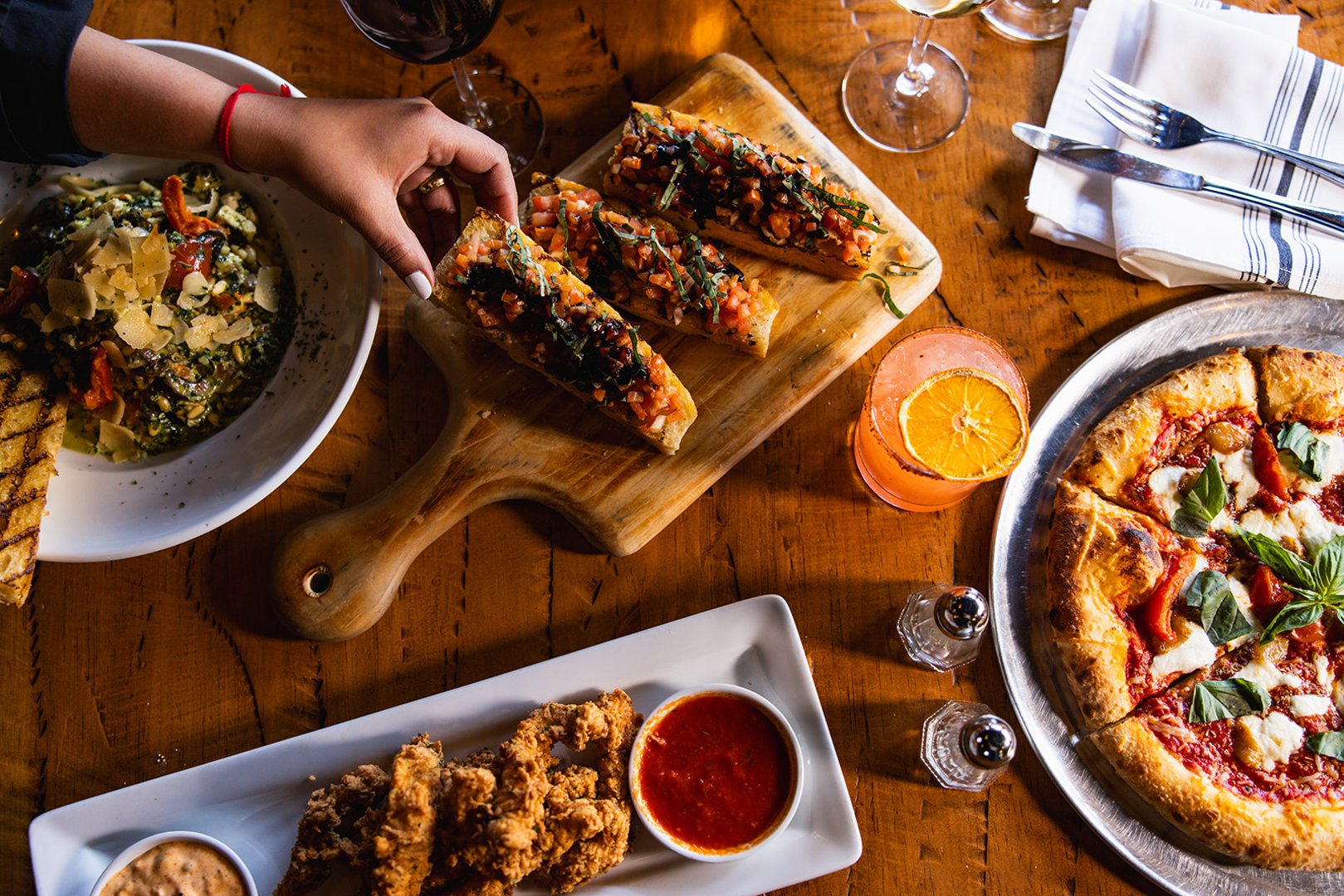 House marinara, shaved parmesan, fresh basil, ricotta cheese, focaccia bread